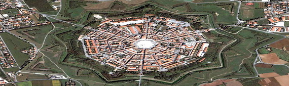 طراحی آن نمونه یک شهر آرمانی بود که ساختار آن بازتاب ایدههای نظریه پردازان رنسانس میباشد. پلان این شهر به شکل 9 گوش مجهز به 18 خیابان است که به صورت شعاعی از مرکز شهر به استحکامات ختم میشوند و نمونه بارزی از یک شهر از پیش اندیشیده دفاعی سده شانزدهم به شمار میرود.